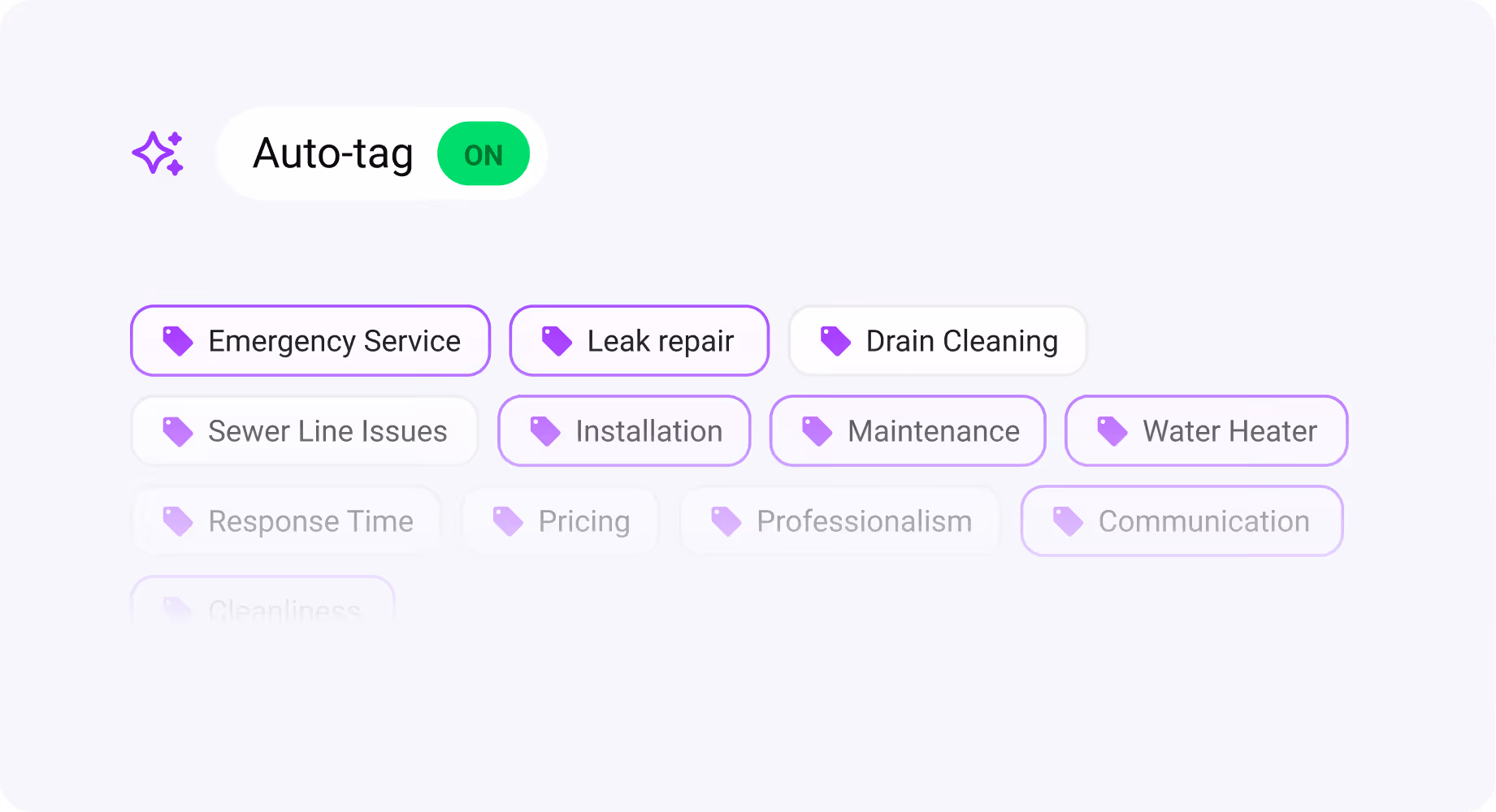AI-powered review tagging automatically categorizes your reviews, making it easy to filter reviews, add notes, and take action faster.