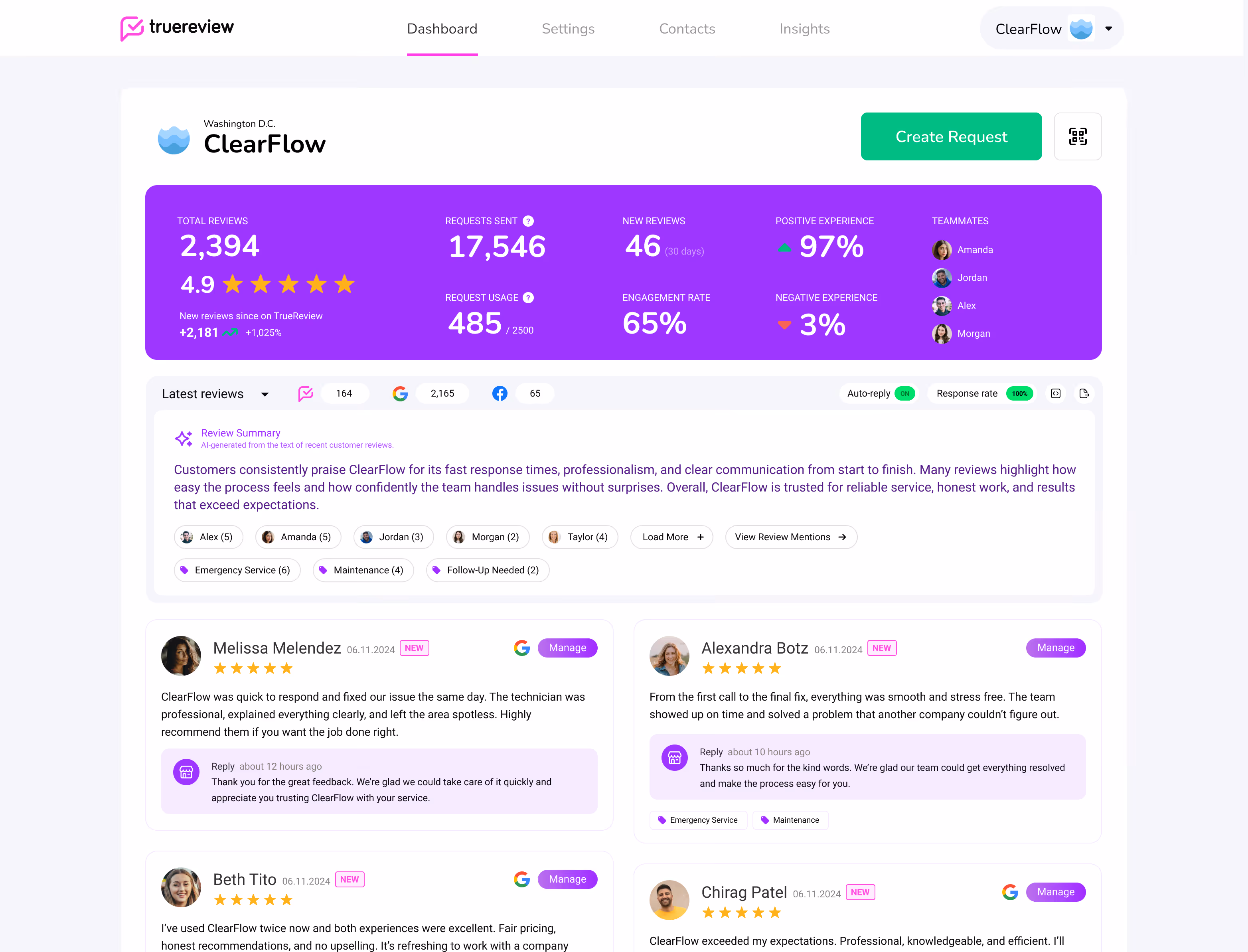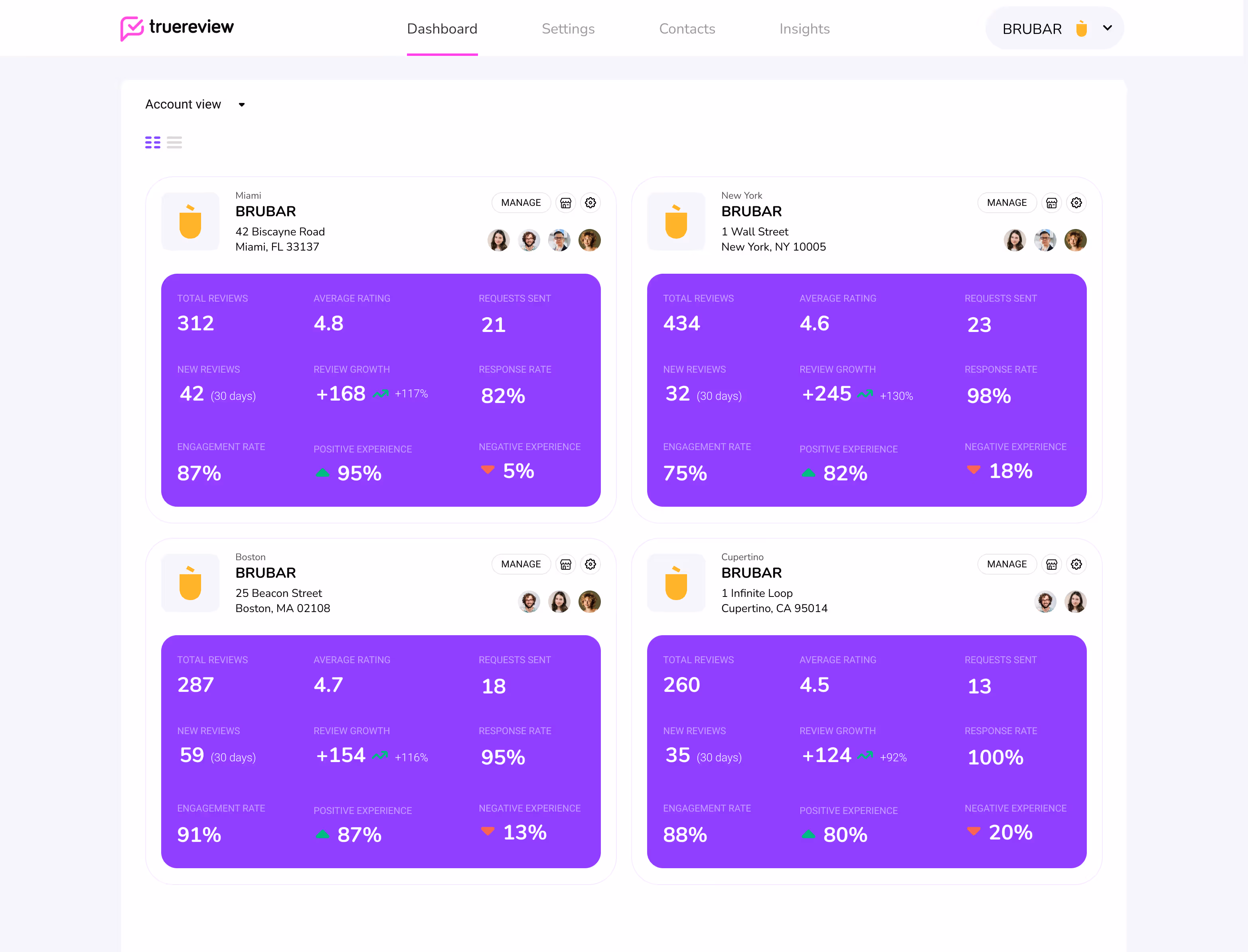 Whether you're managing reviews for 1 location or 100, TrueReview provides a simplified dashboard for businesses of any size.